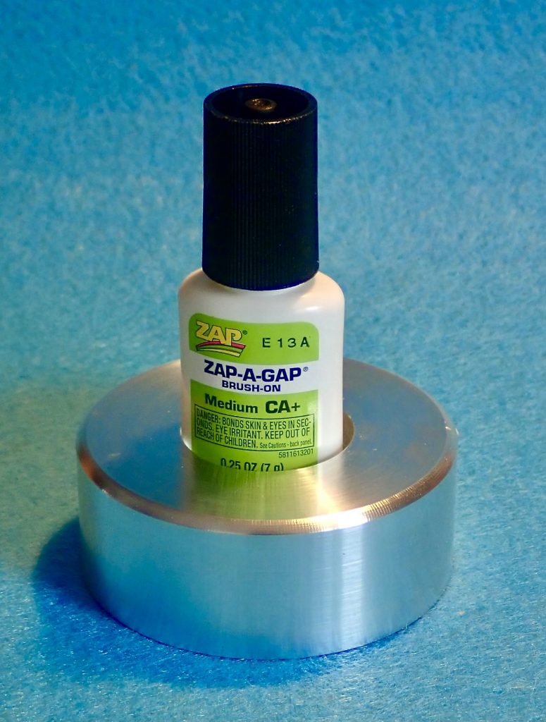 In jungen Jahren habe ich meine Fliegen mit Bootslack lackiert, den ich zu diesem Zweck in kleine braune Fläschchen umfüllte, wie man sie früher in der Apotheke kaufen konnte. Dieser Lack hatte die besondere Eigenschaft, nach einigem Gebrauch etwa ab halber Füllhöhe in so einem Fläschchen die beste Konsistenz zu haben. Ich benutzte denselben Lack auch für meine ersten Gespließten, ging dann aber zum teuren Tauchen über. Bin inzwischen wieder beim Pinsel zurück, weil sich tauchen für eine Rute pro Jahr nicht lohnt. Und auch die baue ich nur, um fingerfertig zu bleiben. Beim Fliegenlack bin ich nach vielen Umwegen wieder beim klaren Cellire Nr. 1 zurück, benutze aber auch Nr. 7, den schwarzen. Zusammen mit Zap-a-gap sind das meine wichtigsten Bindechemikalien, dazu eine große Flasche UV Coat aus dem Kosmetikhandel. Der gravierendste Chemieunfall, der sich auf einem Bindetisch ergeben kann, ist entweder ein offenes und umgekipptes Fläschchen Cellire Nr. 7 oder, doppelt so teuer, Zap-a-gap. Die Sache ist aber die: Hat man sein Bindezeug an den guten Fritz Hansen Tisch getragen, den die beste aller Ehefrauen aus Kopenhagen besorgt hat, dann ist das ein Super GAU. Da kriegt man richtig Ärger. Mir kann das eher nicht passieren, denn mein Bindetisch besteht aus zwei 10 mm Multiplexplatten mit Schubladen dazwischen. Selbstgebaut. Und ich habe mir aus Aluminiumresten Ständer gebaut, in die ich problematische Chemie einklebe. Einfach ein Tropfen Heißkleber in das Loch und die Zap-a-gap Flasche einkleben. Kostet fast gar nichts und erhöht die Standsicherheit erheblich. Wer keine Drehbank hat, auch keinen Freund mit einer Drehbank, klebt das Fläschchen auf irgendeine schwere Metallronde. Da wird sich was finden lassen. Außerdem bin ich sicher der Bindehandel hat schon oder hat demnächst diese Idee im Angebot.