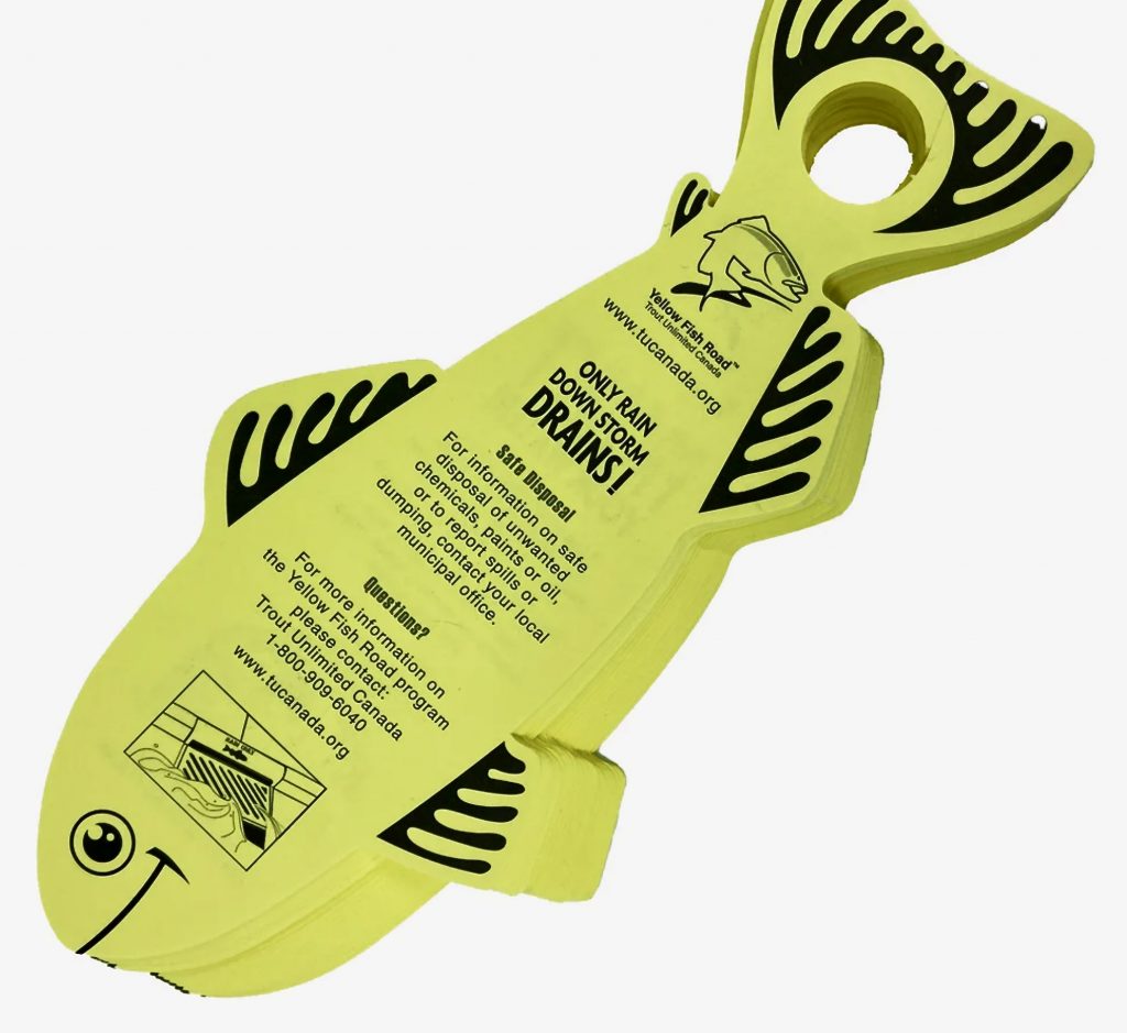 An den Abläufen, an denen Wasser ungeklärt in die Natur gelangen kann, wird der Yellow Fish angebracht.