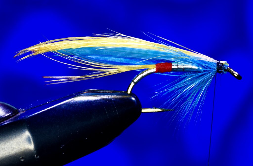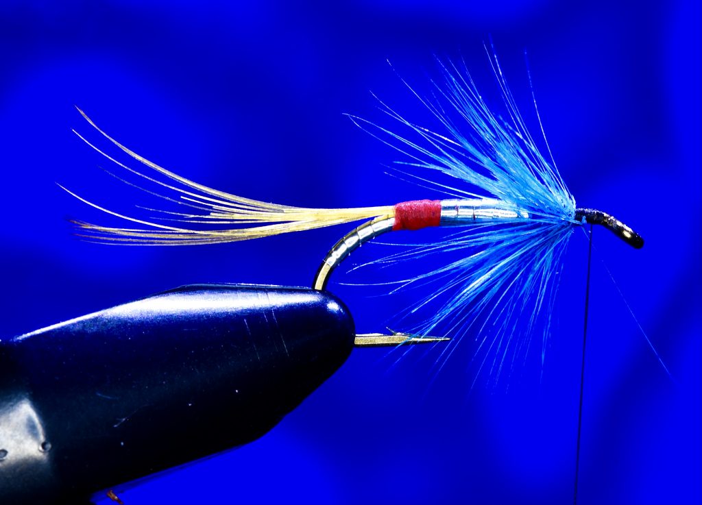 Dieser „Seatrout Silver Doctor“ kommt von der Isle of Skye und hat dort hunderte von Meerforellen gefangen. George Barron hat ihn als Muster von Andy Sturrock in seinem Buch „A fine Line“ vorgestellt. Die Fliege orientiert sich an einem klassischen Vorbild, bietet aber mehr Länge und einen etwas anderen Mix bei den Farben. Sie ist wunderbar für die Ostsee geeignet, insbesondere als Springer, damit sie wie andere Springerfliegen auch die Chance bekommt, die ewig gleichen Streckerfliegen herauszufordern. Es gibt Muster, die mag ich nicht mehr sehen. Ich persönlich hatte immer schon eine besondere Abneigung gegen die „Pattegrisen“, die ich darum auch nicht mehr in den Dosen habe. Andere Populärmuster habe ich ebenfalls pensioniert. Unseren Kindern und Enkeln verbieten wir ja auch Nuggets mit Ketchup täglich zu essen. Bei dieser „Silver Doctor“ hat man die Wahl, den Flügel aus blaugrauer Taube oder aus blauem Ara zu binden. Man findet die exotischen Federn überall im Handel, insbesondere bei Etsy, aber wenn Sie so wie ich den Verkäuferangaben nicht trauen, von wegen Mauser und so, dann kann man Ara sehr effektiv mit Schlappen ersetzen. Der Charakter der Fliege bleibt erhalten. Man hat den Eindruck, dass britische Flüsse die klassischen Muster über die vielen Seapools besser ins Meer eintragen als dänische Flüsse es konnten. Die Gene der Muster blieben besser erhalten. Und gehen wir mal davon aus, wenn diese Fliege auf und um Skye fängt, dann fängt sich auch auf Skarœ.